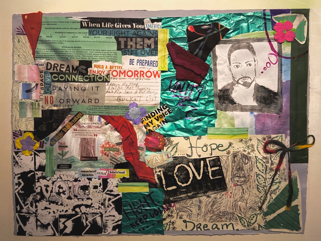 A section of the Kent School’s 90th anniversary project, “Art of our Mission.” Faculty, staff, students, alumni and friends contributed pieces for the collage, which will have a permanent home in the Kent School’s Oppenheimer Hall in fall 2026.