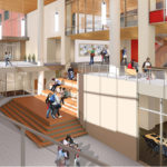 This Belknap Academic Building rendering shows the open spaces that encourage active learning.