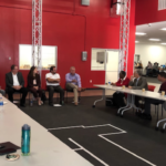 Eric Thomas speaking, seating on stage, wearing ball cap and Michigan State Spartans hoodie